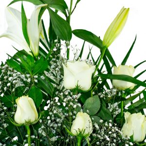 - En caso de que tus flores lleven espuma floral, cuida de que siempre este húmeda con color verde intenso, si su color cambia a color claro es señal que necesita más agua, te recomendamos revisarlo de 2 a 3 veces al día.